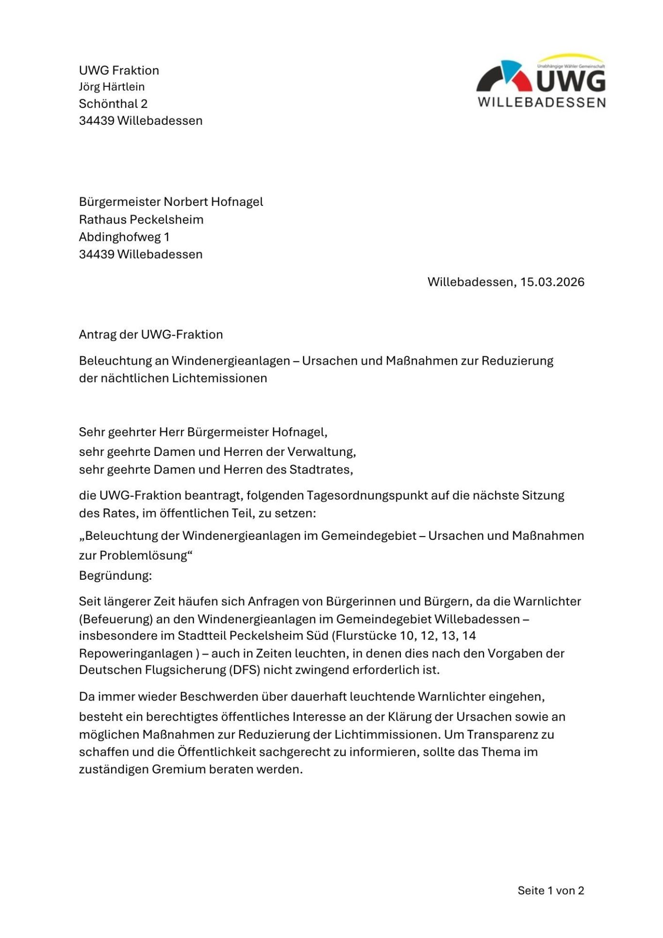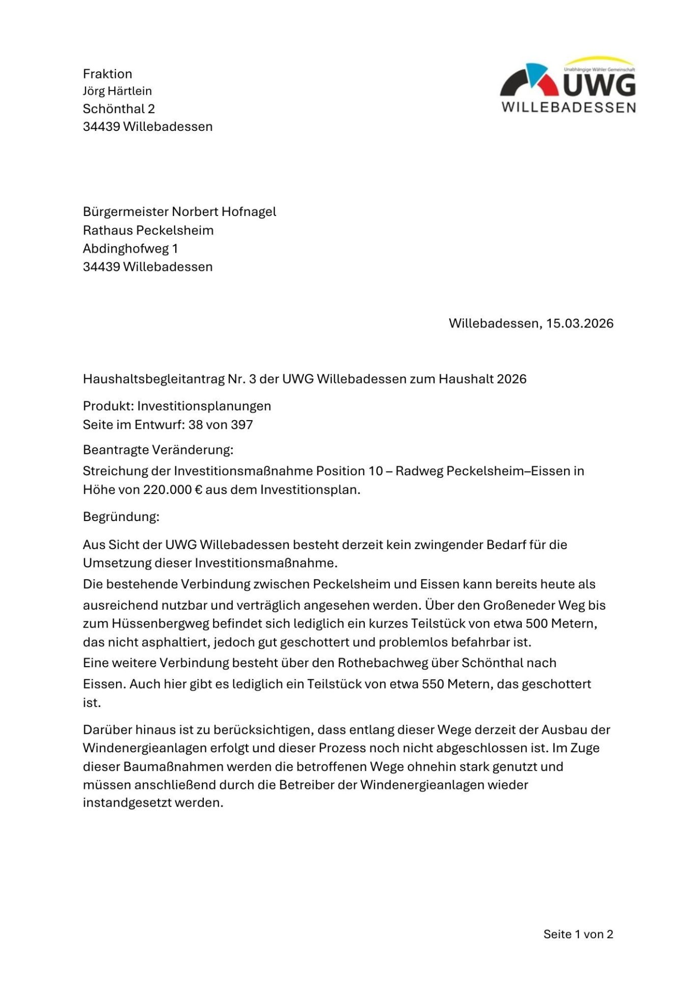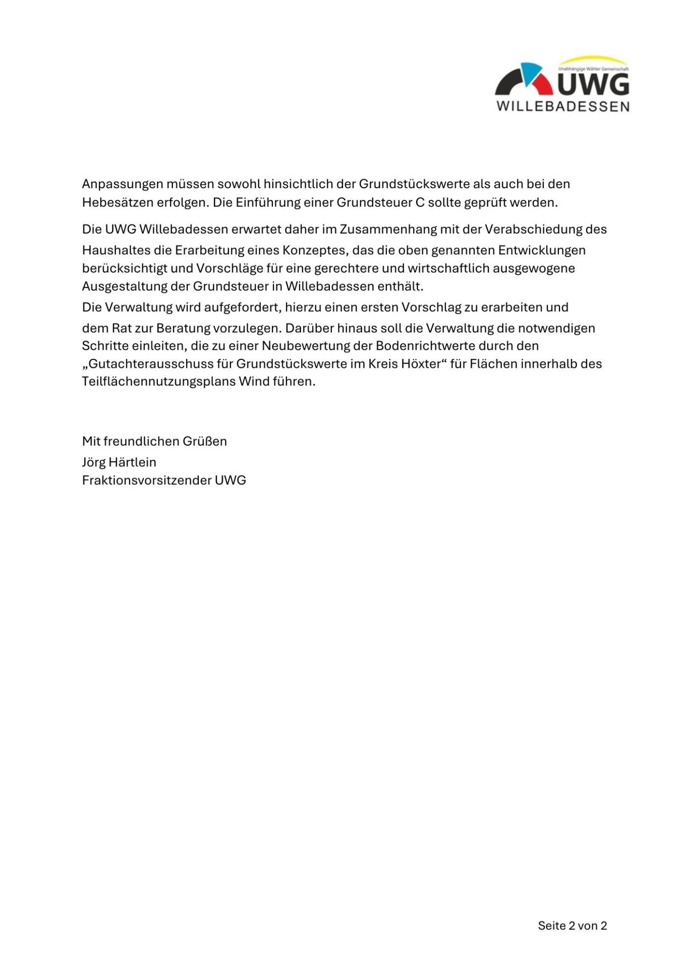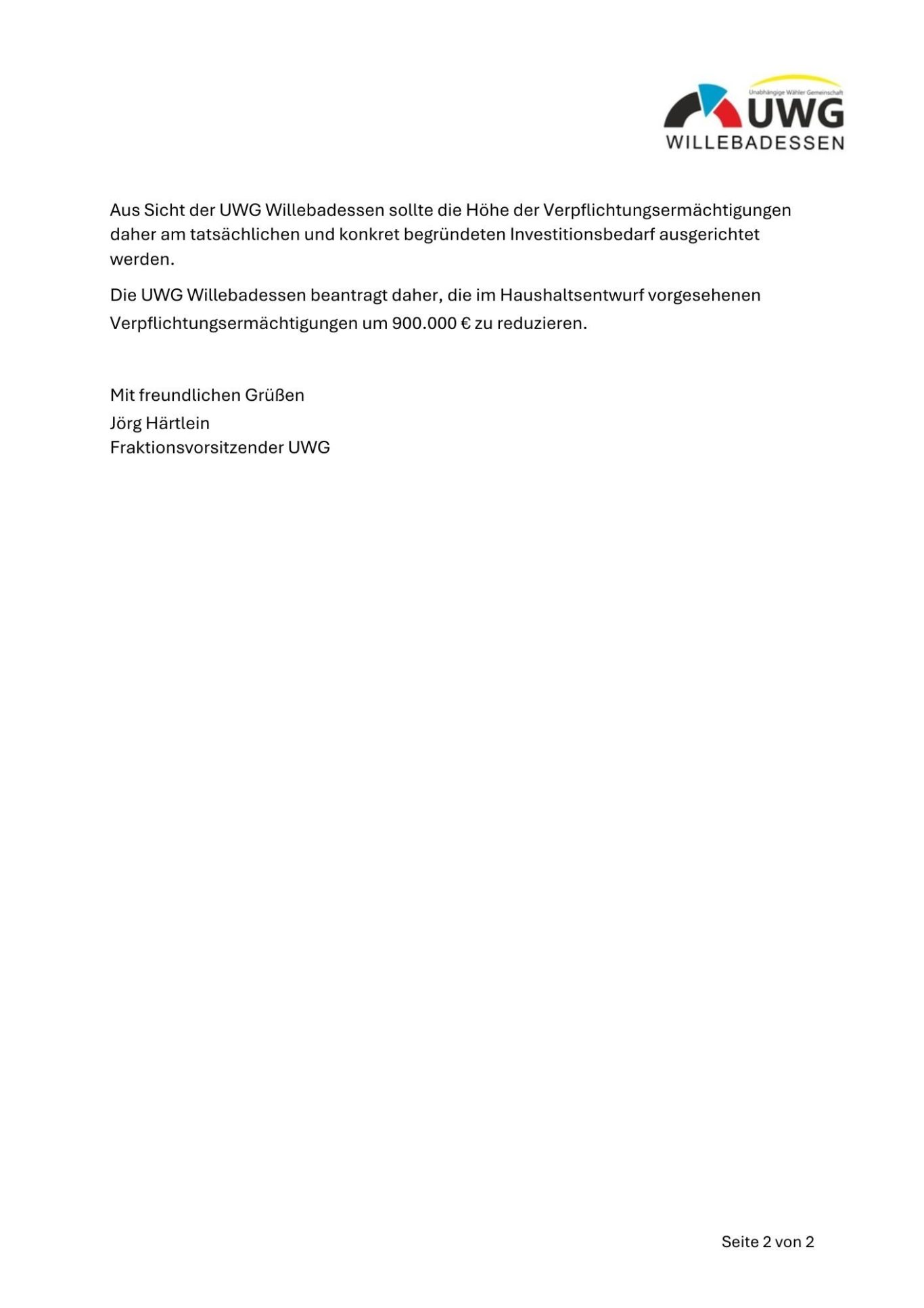 Antrag der UWG-Fraktion