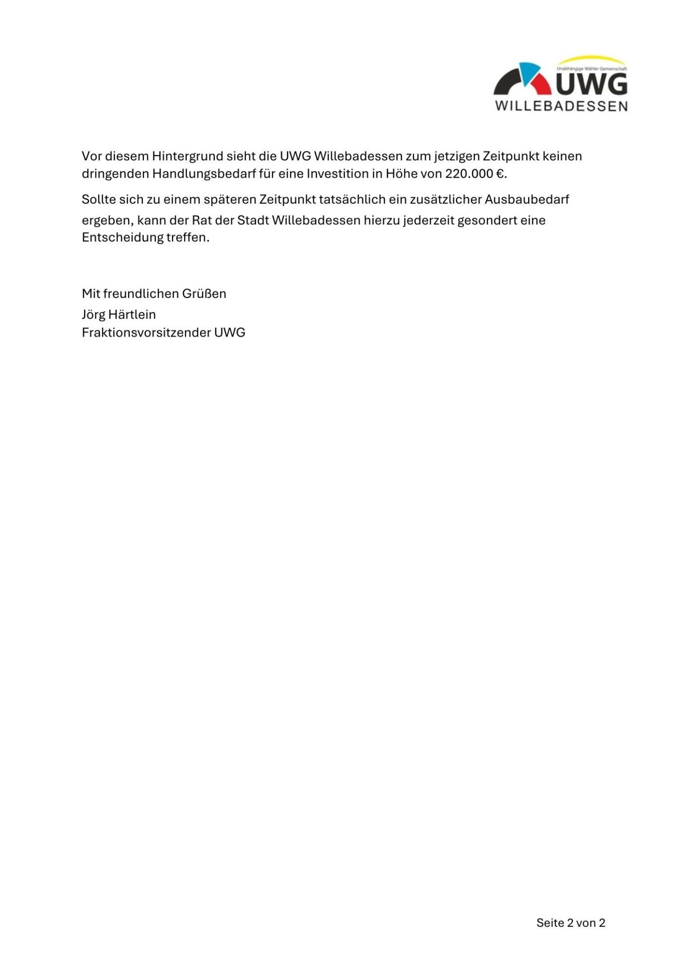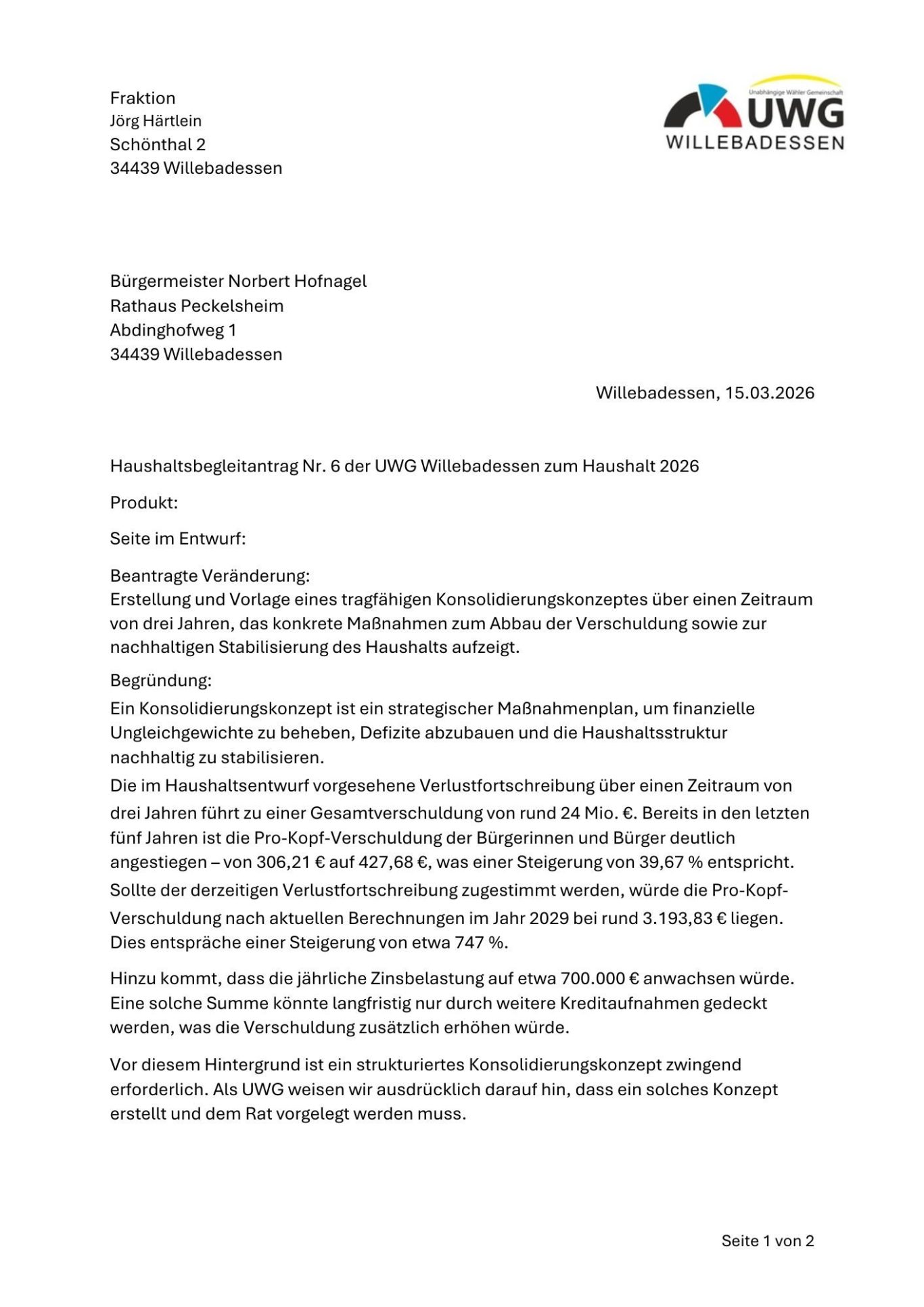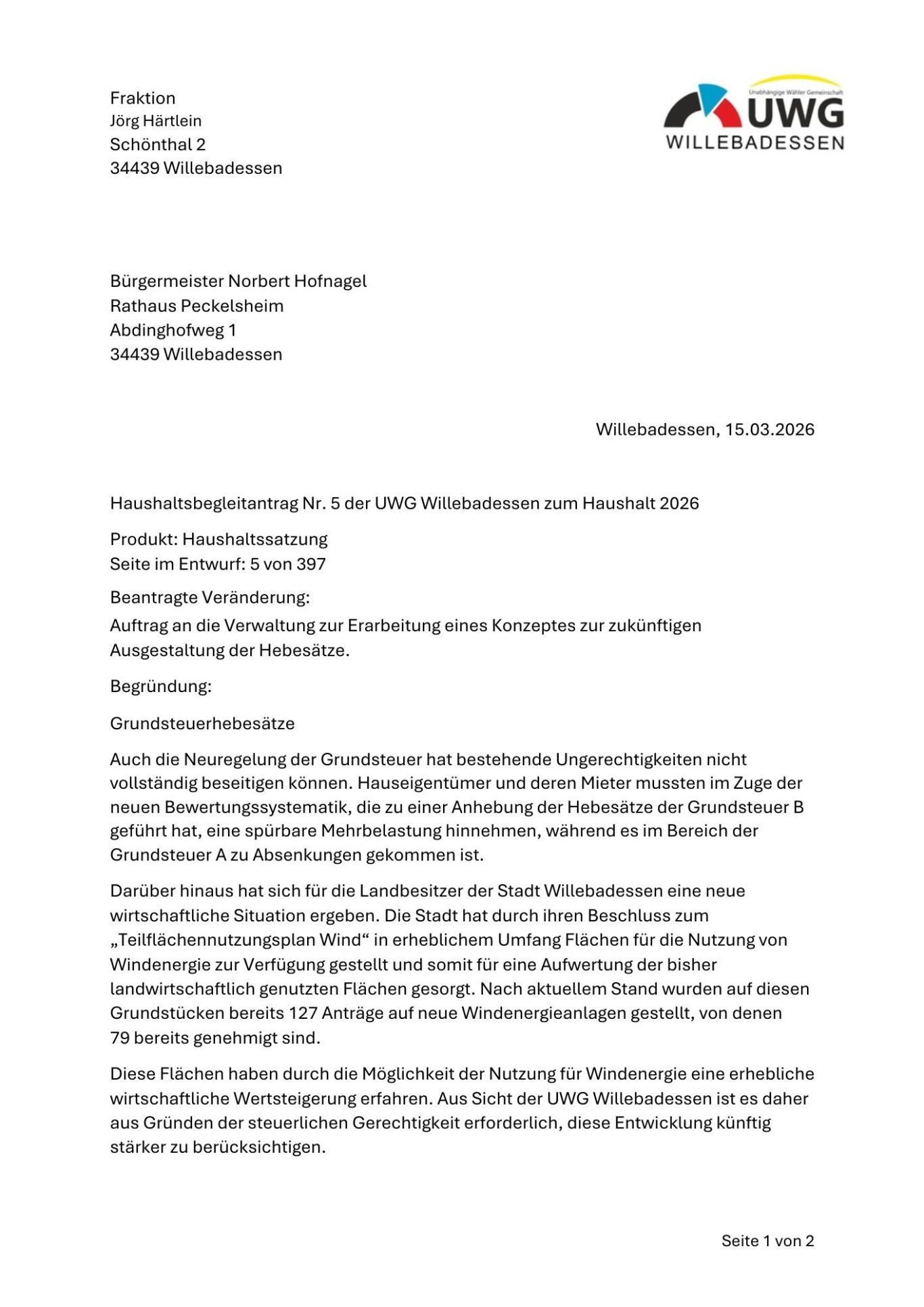 Antrag der UWG-Fraktion