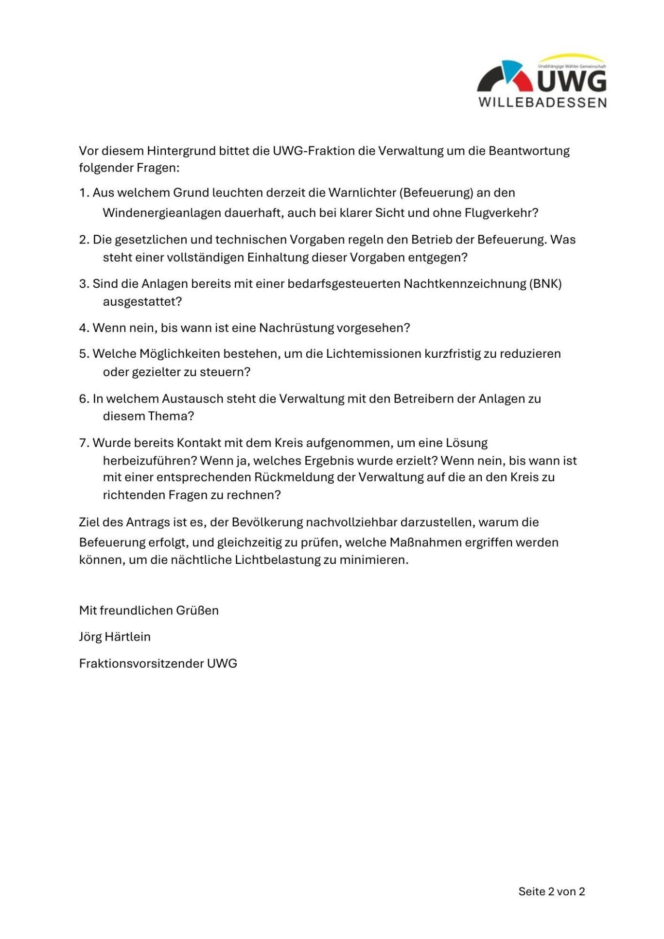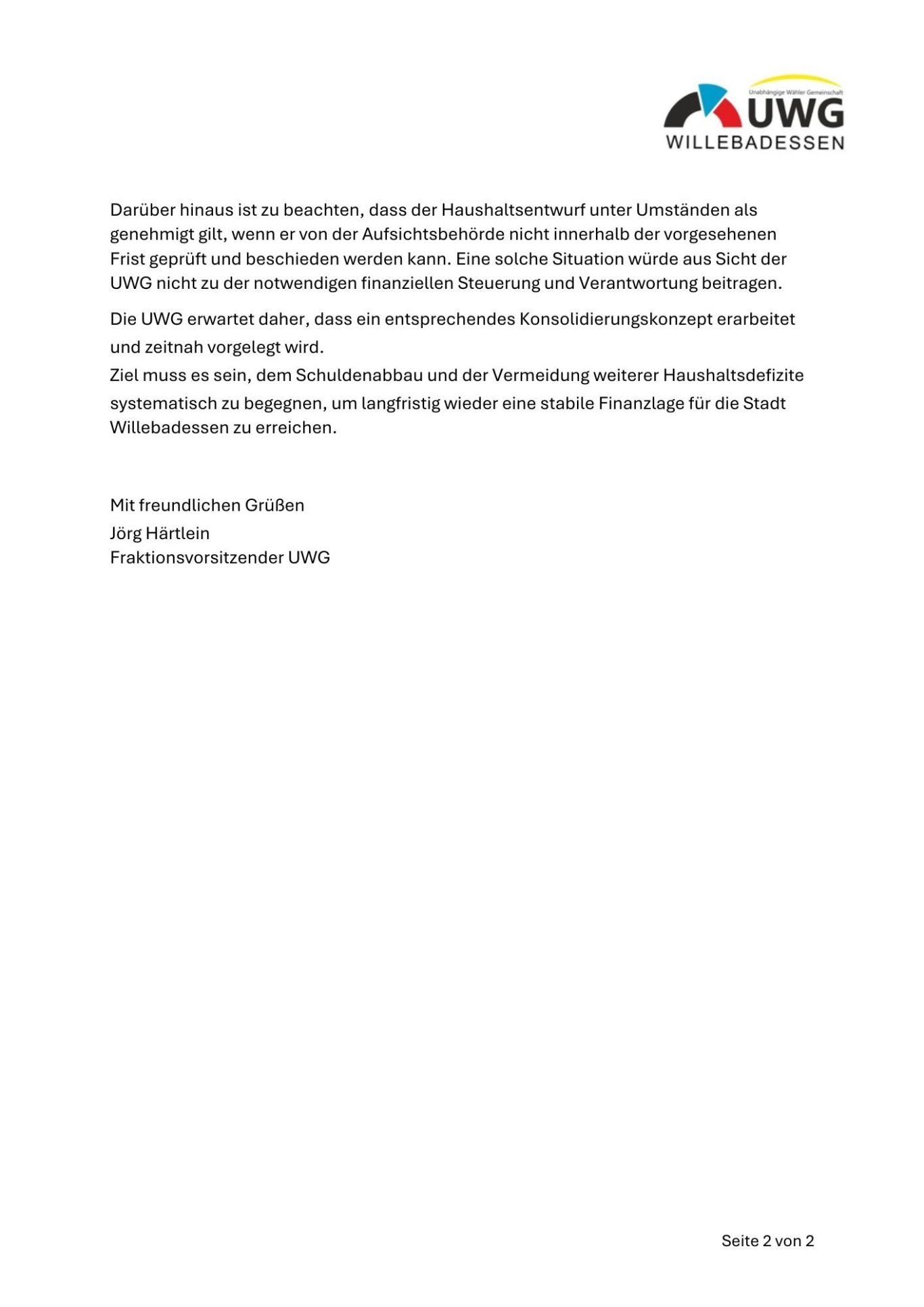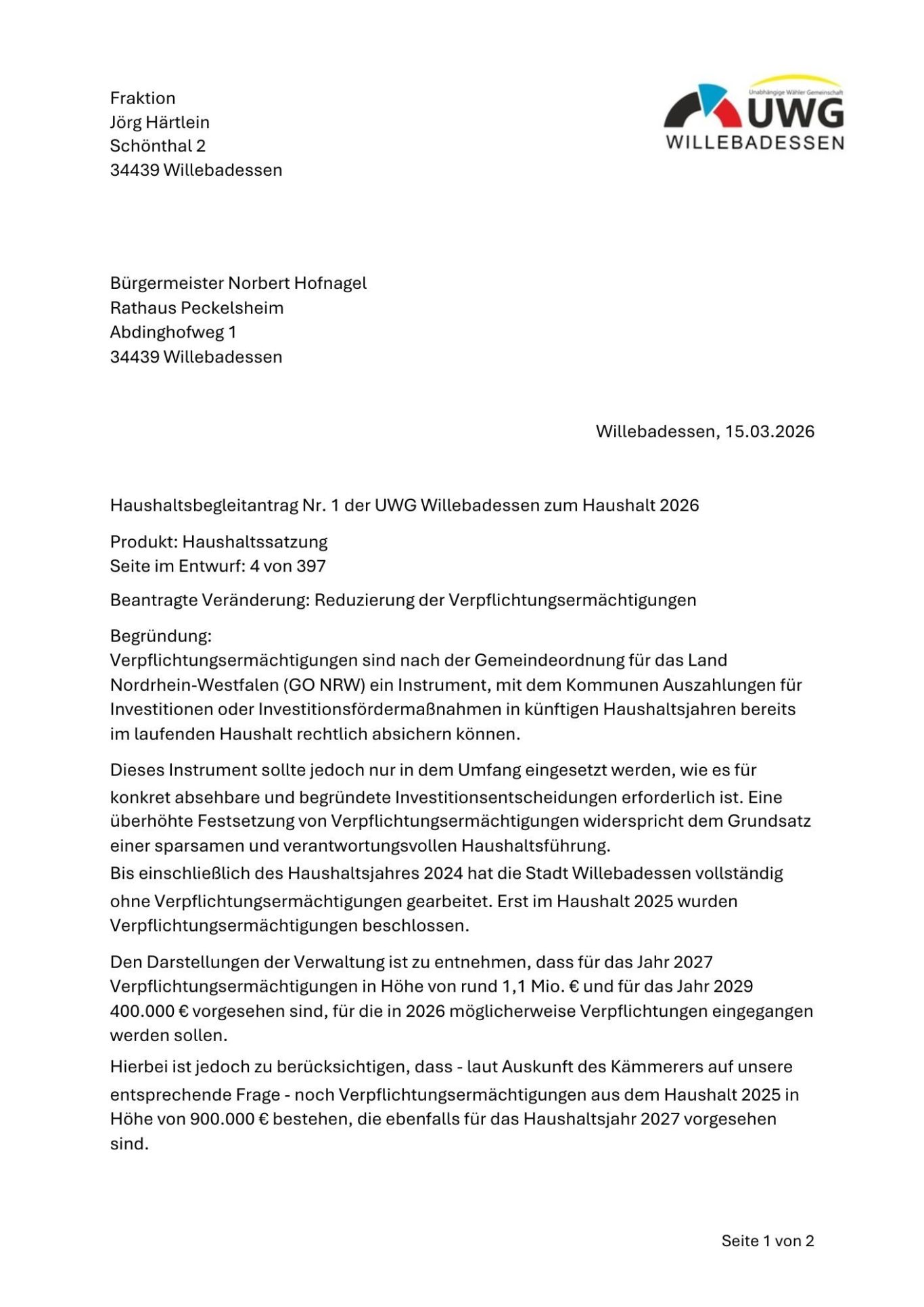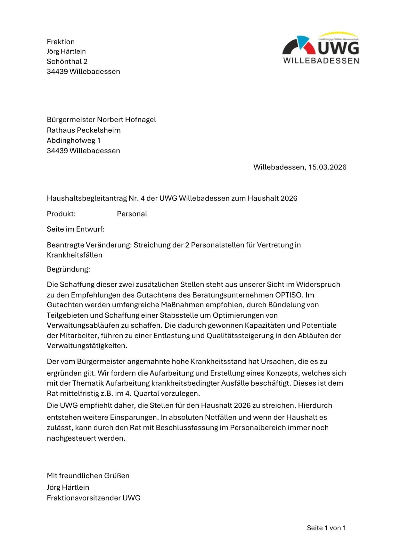 Antrag der UWG-Fraktion